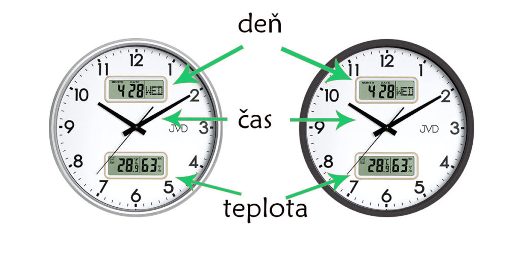 Hodiny na stenu Digitálne JVD ten správni čas na ich kúpu .Nestačí Vám, keď nástenné hodiny ukazujú len čas, ale máte vyššie nároky? Chceli by ste mať neustály prehľad aj o teplote prostredia vnútri/či vonku, o dni v týždni a v mesiaci a to všetko v jednom zariadení priamo pred nosom? Nástenné hodiny JVD splnia Vaše očakávania vďaka multifunkčnosti, ktorá je im vlastná! Buďte plne informovaný o všetkom čo potrebujete a zakúpte si digitálne hodiny na stenu značky JVD. Garantujeme Vám dlhodobú spokojnosť!