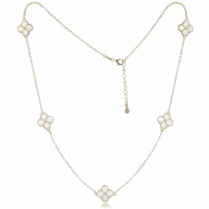 • MINET Pozlátený strieborný náhrdelník štvorlístok biela perleť